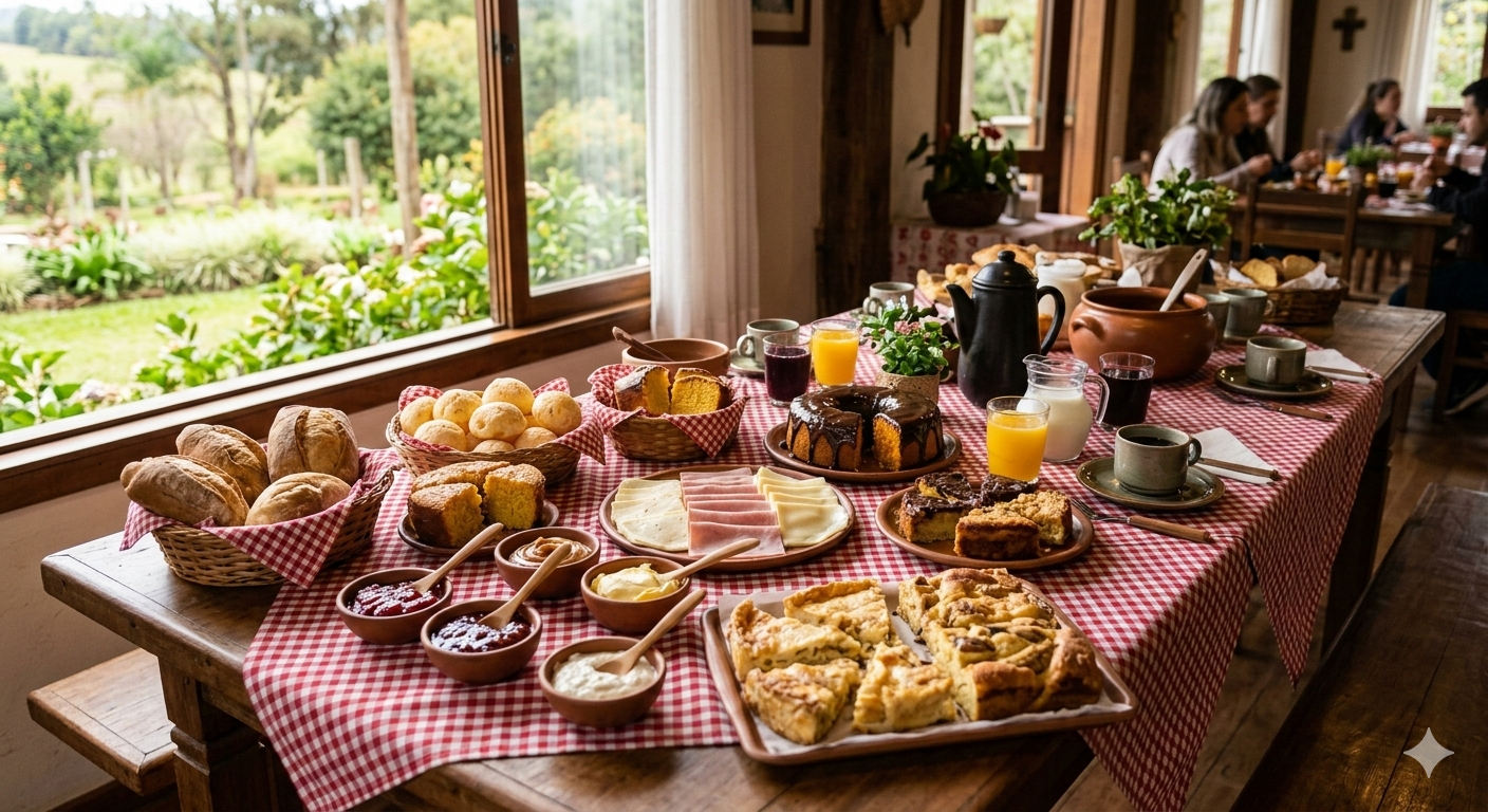 O Café Colonial é uma experiência pensada para quem valoriza sabor, tradição e momentos de aconchego. Em um ambiente acolhedor, cercado pela natureza, oferecemos uma mesa farta com receitas caseiras, preparadas com carinho e aquele gostinho de casa de fazenda.